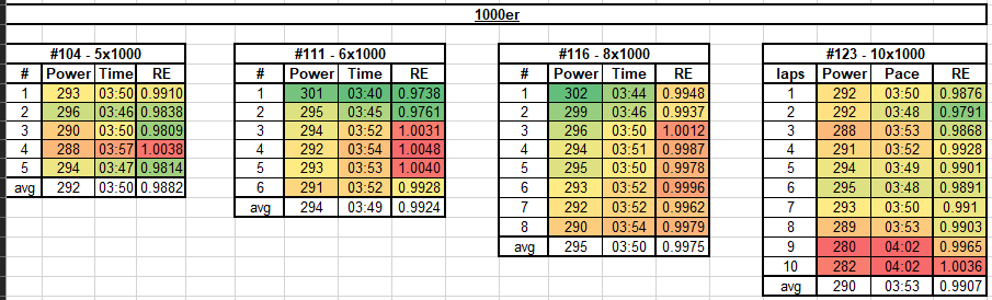 Analog zur Phase 1 hab ich versucht den Erfolg dieser Einheiten mit der gleichen Auswertung zu evaluieren, indem ich die Power, Pace und Laufeffizienz verglichen habe.