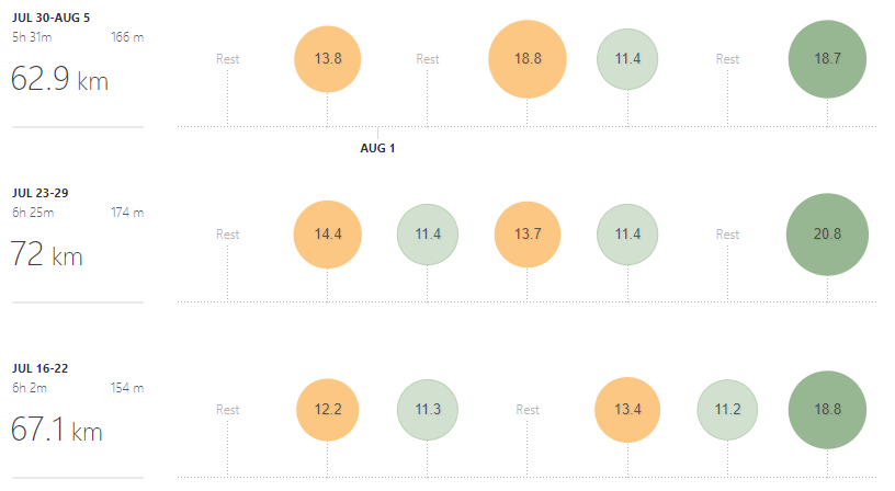 Im Moment befinde ich mich in der zweiten “Erholungswoche” und die letzten 3 Wochen sahen so aus: