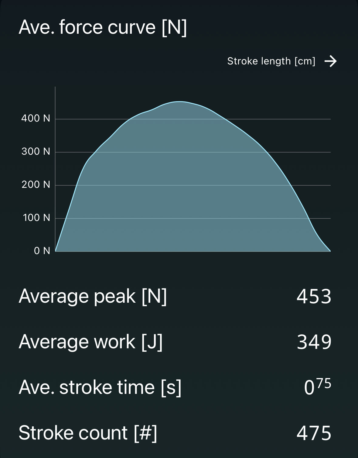Your curve is smooth, single-peaked, and well filled, which is a good sign. There are no secondary peaks or abrupt drops, so the stroke is mechanically consistent.